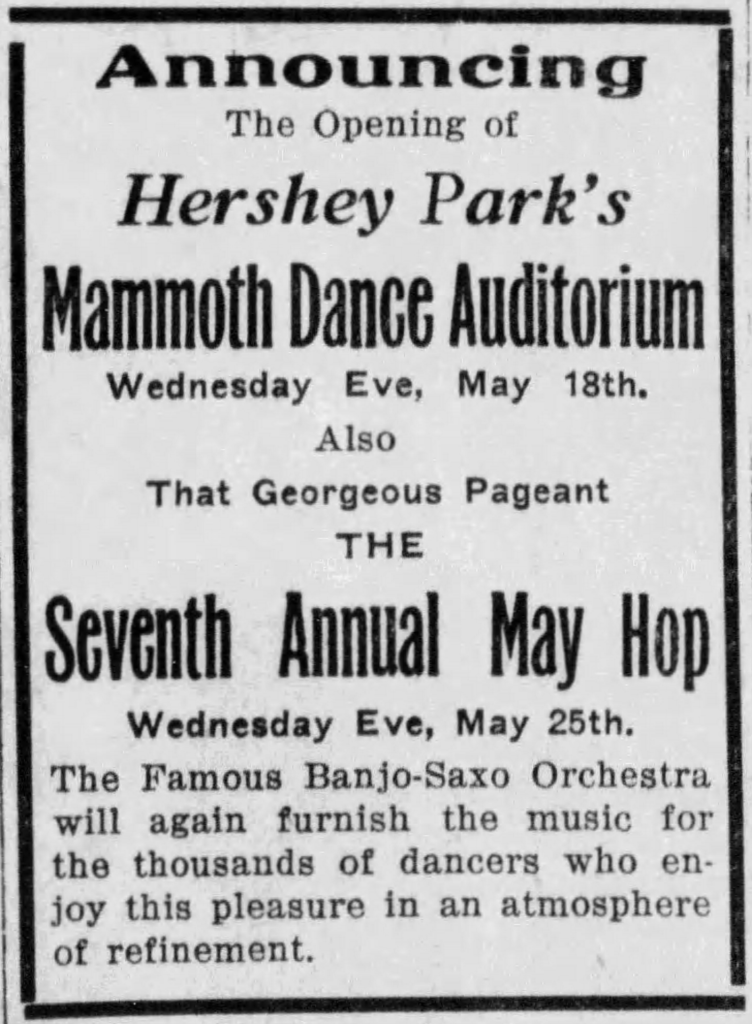 The orchestra played at Hersheypark most years between 1919 and 1925.