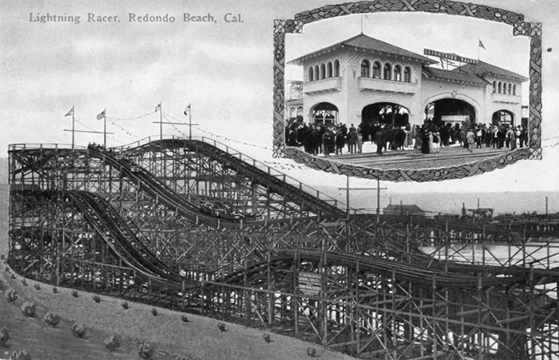 Redondo Beach, California, operated a twin racing roller coaster called Lightning Racer, from May 1913 until October 1923. It was a twin, racing, out and back roller coaster. It was