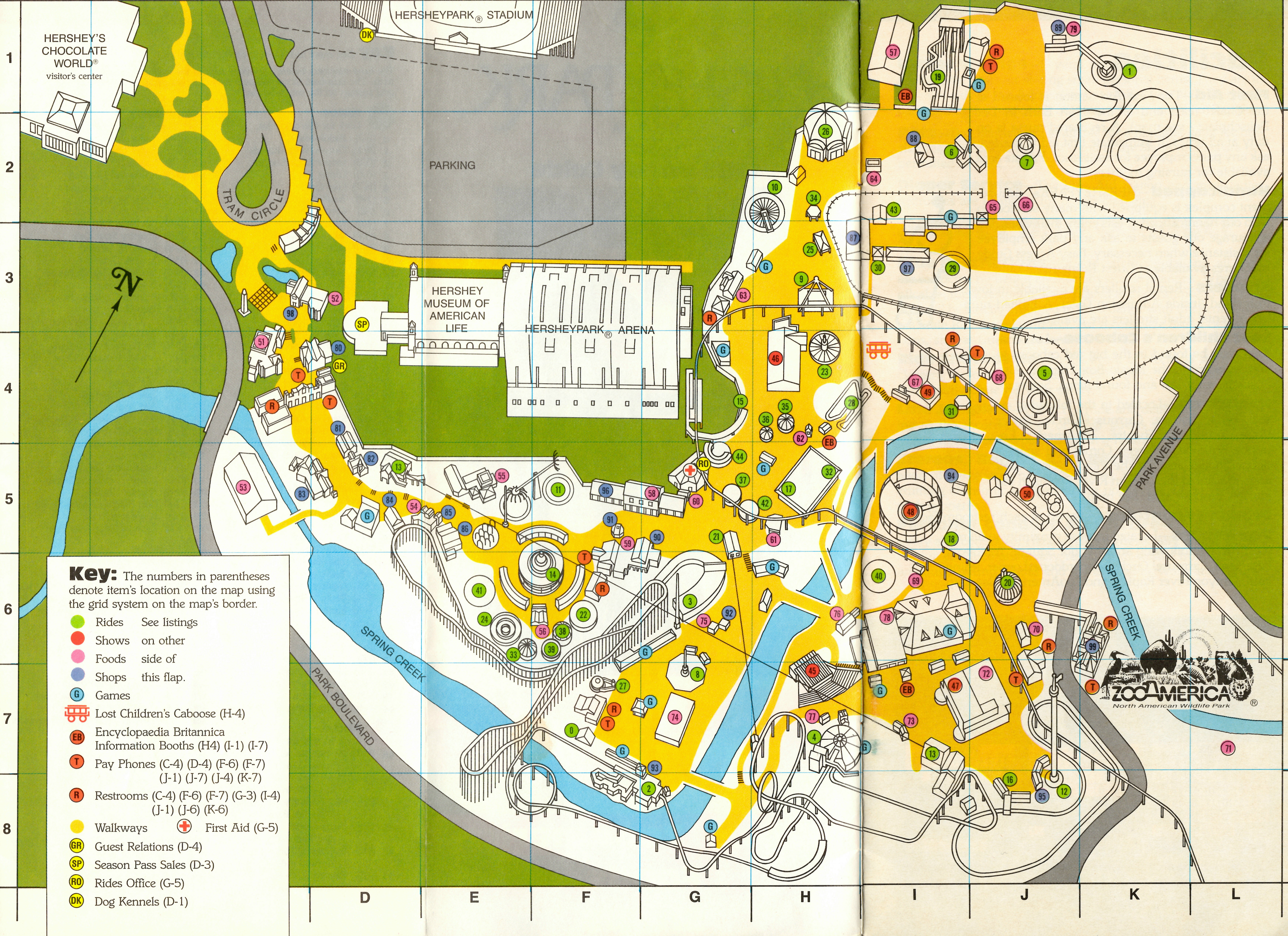 Tiny Timbers was added for the 1989 season. Balloon Flite was relocated to Pioneer Frontier Food Court for this season, since Tiny Timbers was installed in the Balloon Flite location. Additional markers were added for Rides Office and the Barking Lot kennel.